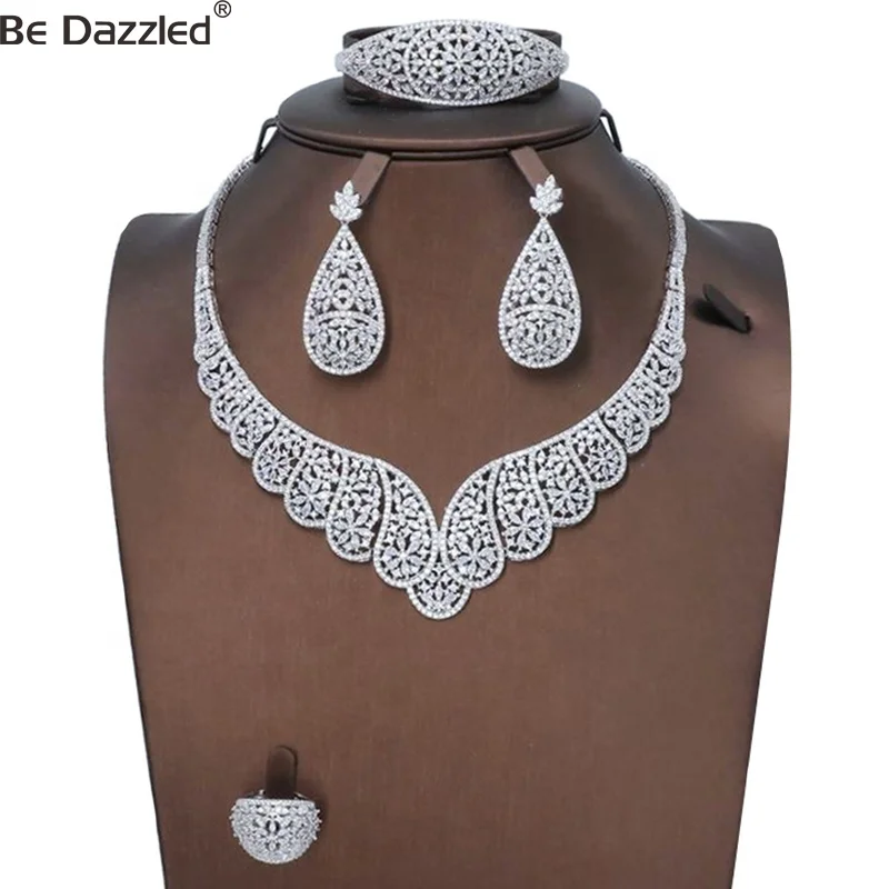 Bedazzled jewelry supplies china wholesale copper women luxury jewellery rhodium plated bridal wedding jewelry set