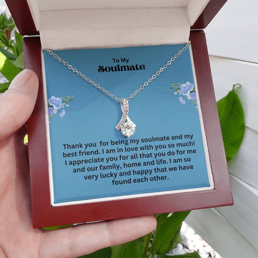 Imagine her reaction when she opens this stunning gift! The Alluring Beauty necklace features a petite ribbon pendant that is sure to dazzle your special someone. Whether it's a birthday or anniversary, make sure to get her a gift she will love for years to come.