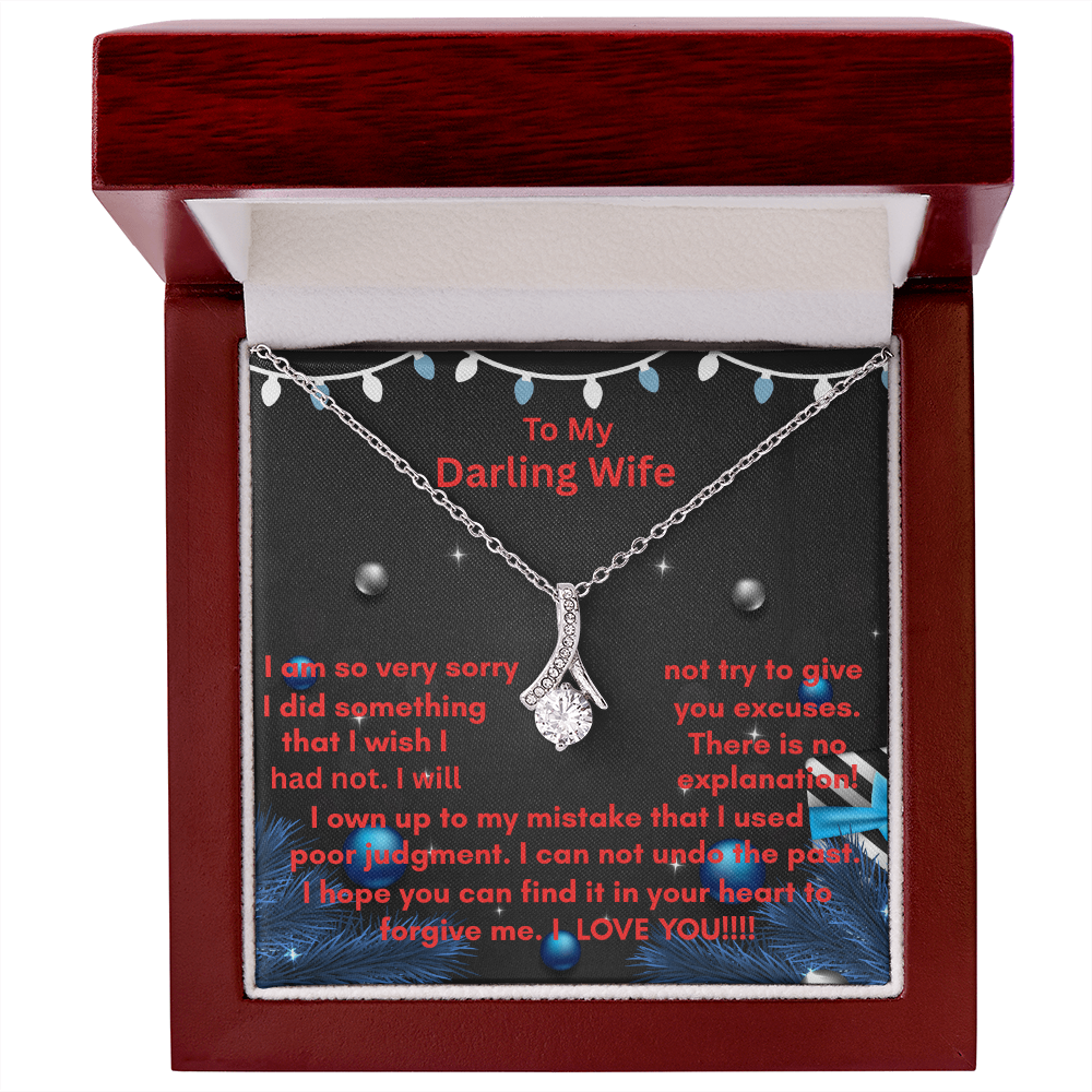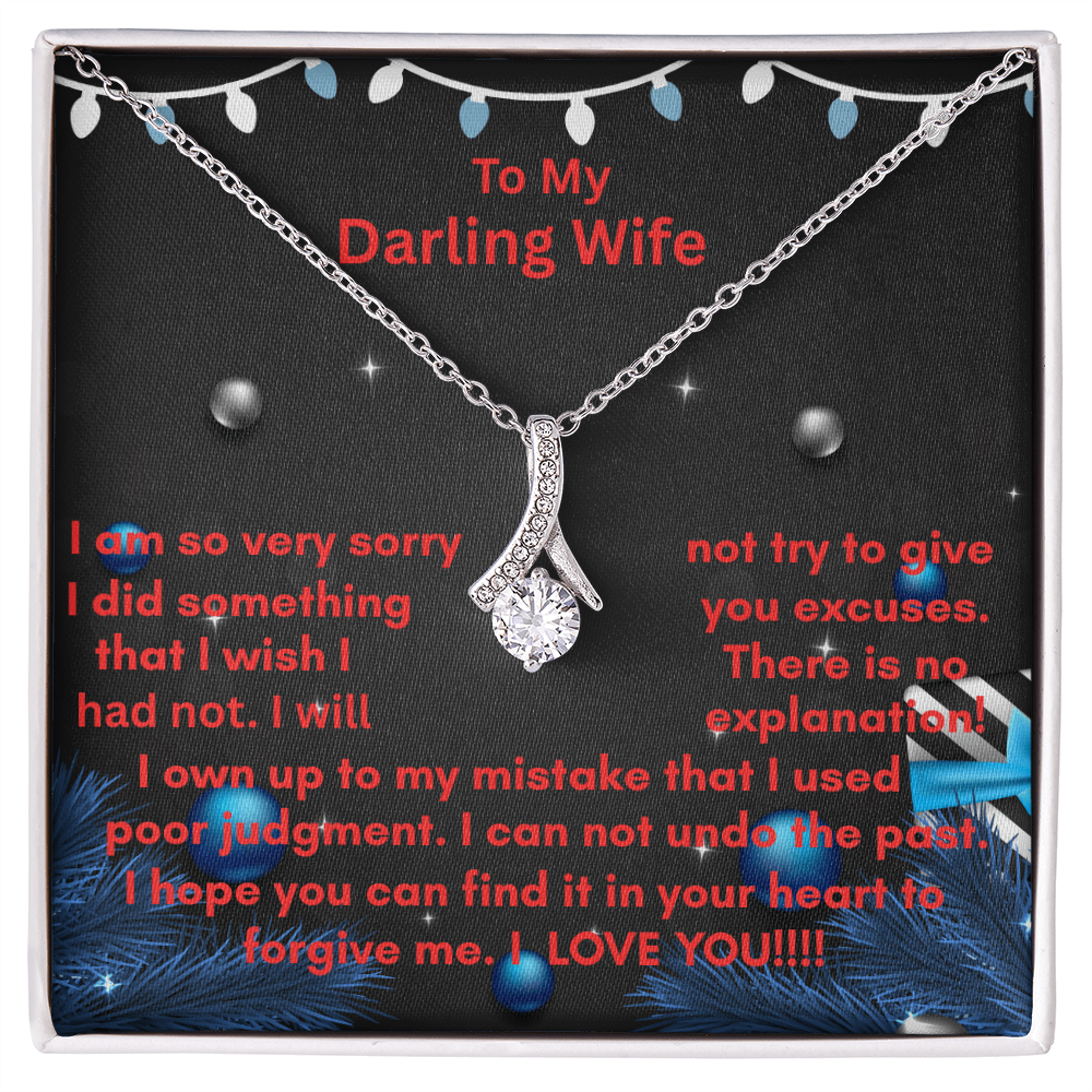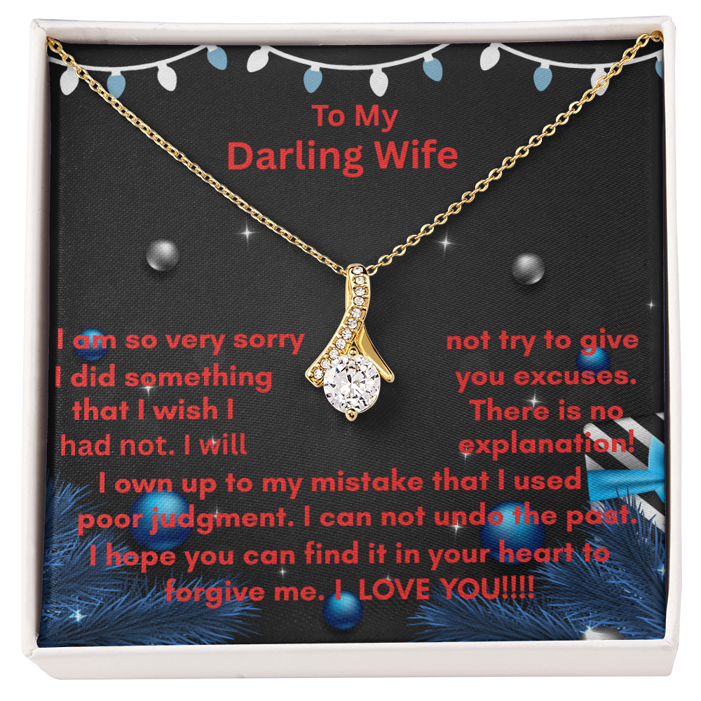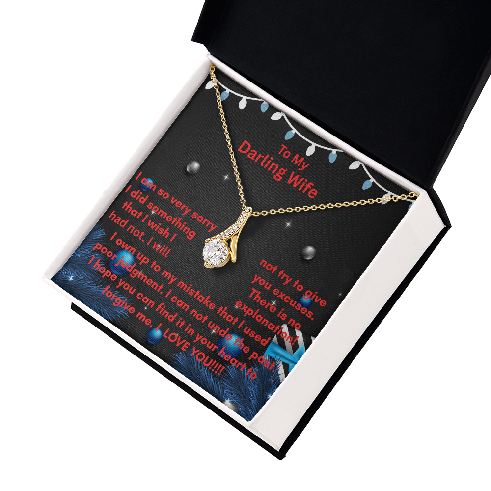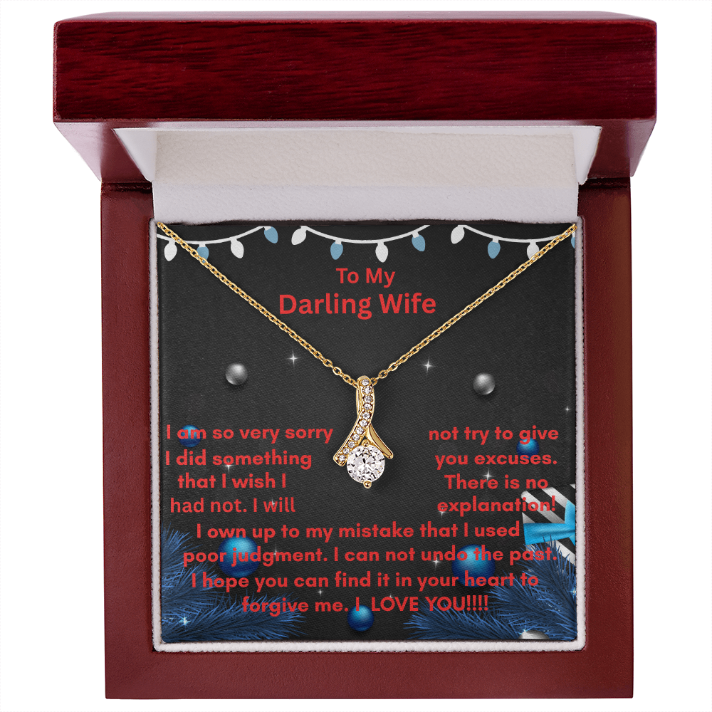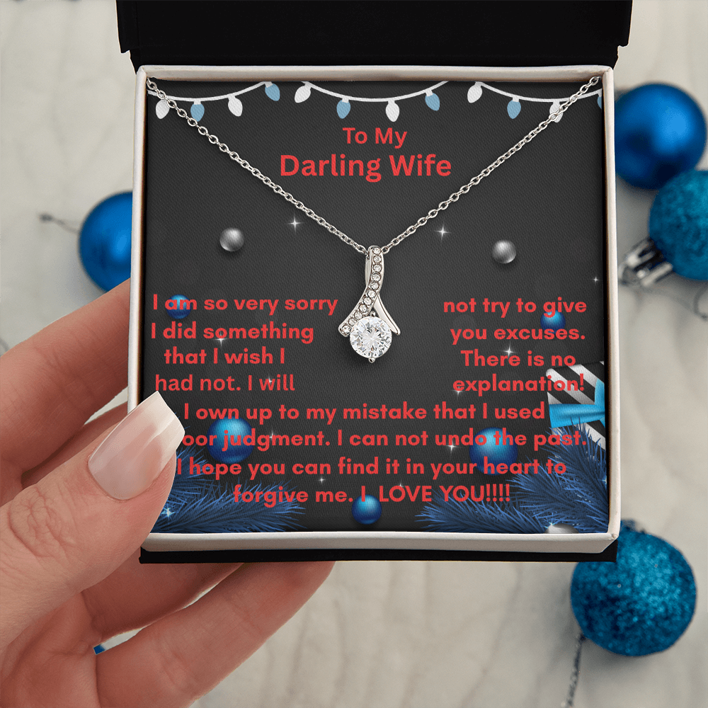 Watch her reaction when she opens this stunning gift! The Alluring Beauty necklace features a petite ribbon-shaped pendant that is sure to dazzle your special someone. Whether it's a birthday, or anniversary, or Christmas, make sure to get her a gift she will love for years to come. It is available in 14K white gold finish or 18K yellow gold finish. The luxury box has a built-in LED light, so when opened, it illuminates the necklace, making it shimmer and sparkle.