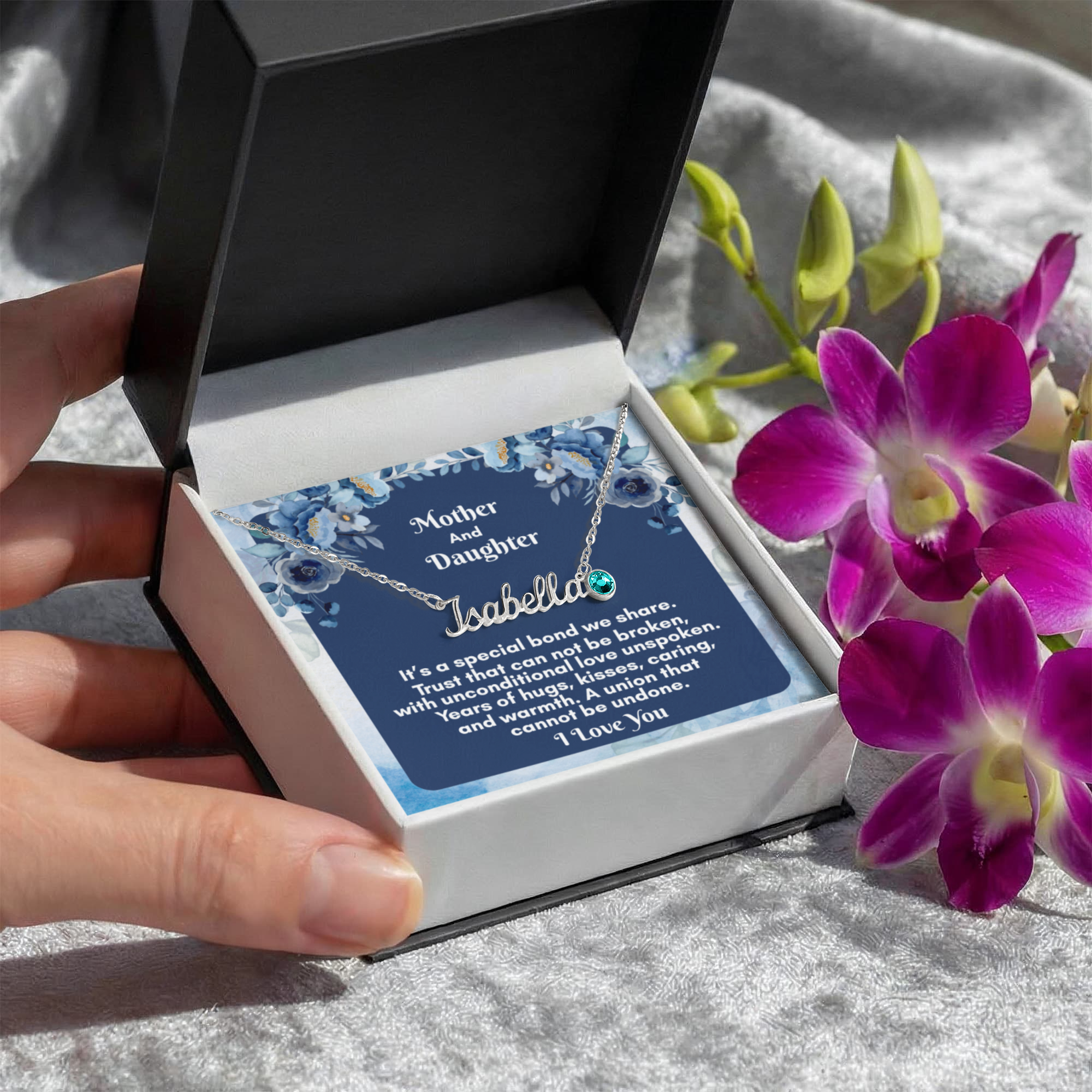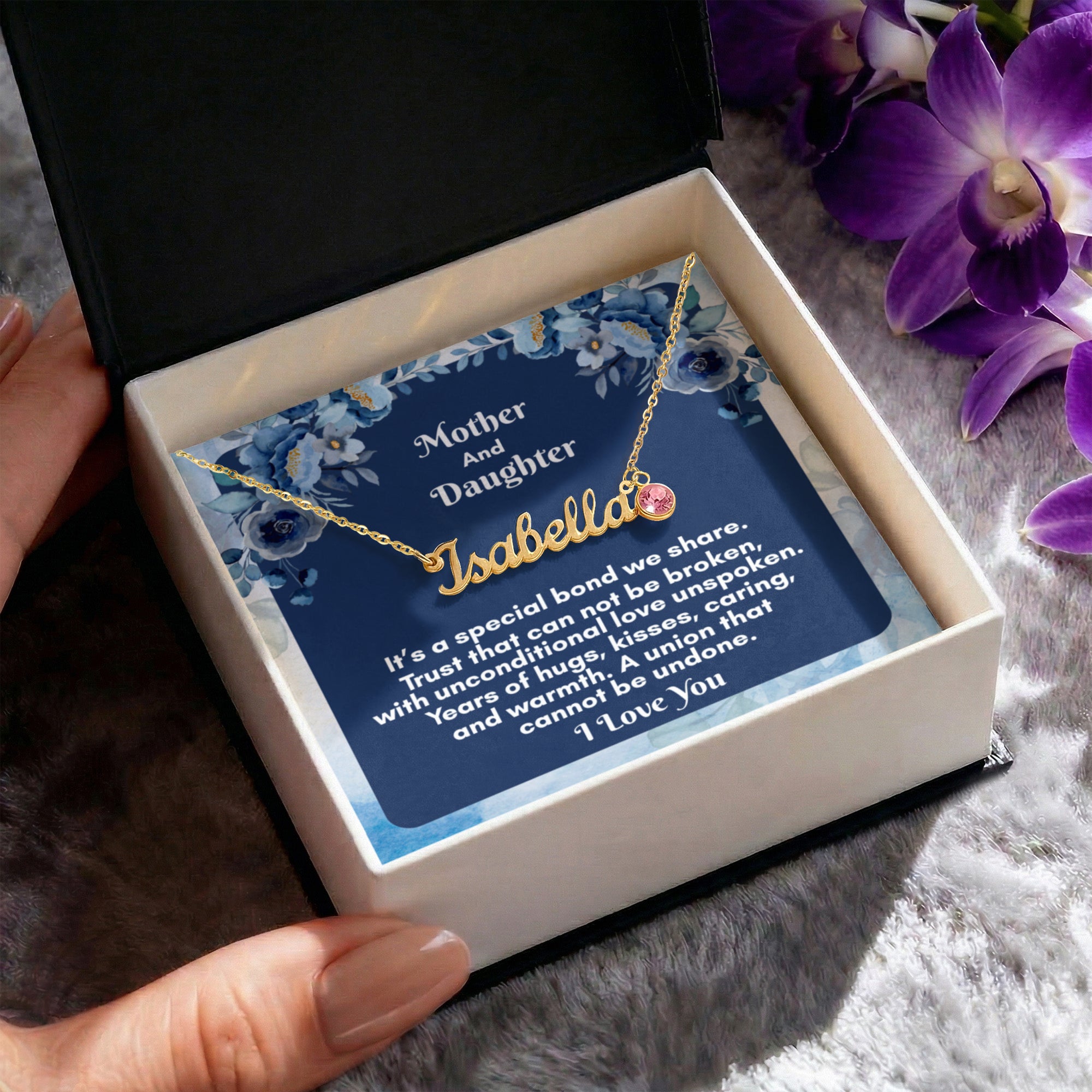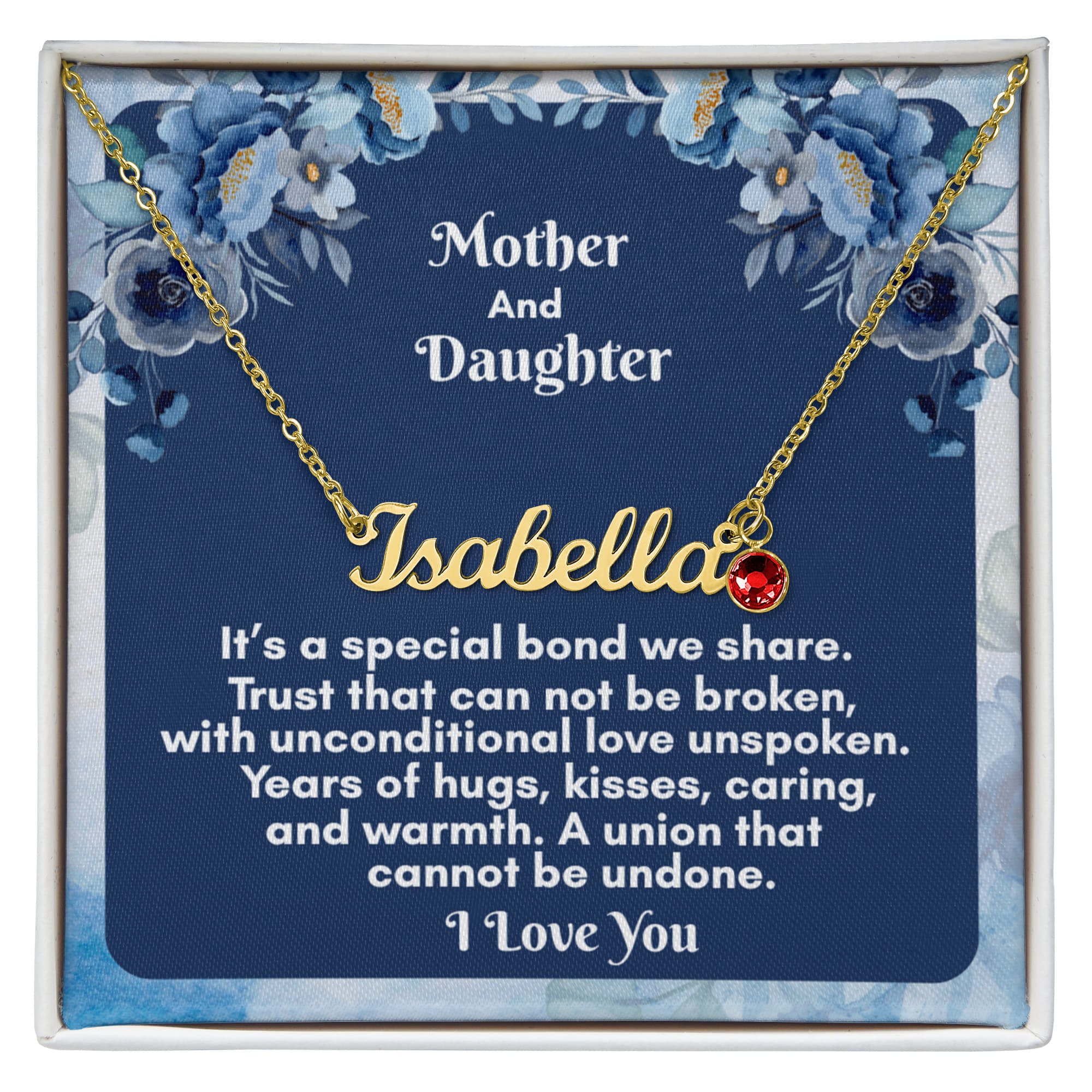 Give your Daughter this personalized necklace made just for her — now with a personal touch that's truly one of a kind! Our Custom Name Necklace with Birthstone combines a timeless cursive name design with a sparkling birthstone charm, making it the ultimate gift for the people you love most. A perfect gift for a birthday, holiday, or just because, this necklace is as meaningful as it is beautiful.
