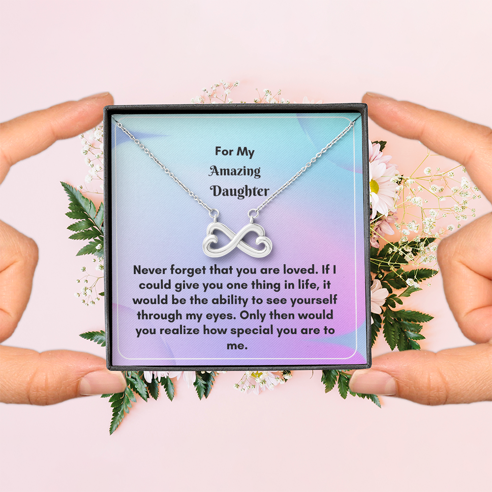 Give your Daughter this most beautiful Endless Love Necklace. Celebrate your everlasting love and express your affection with our Endless Love Necklace that says "I'll love you till the end of time." Artisan-crafted in either a 14k white gold finish or an 18k yellow gold finish, this heart-shaped infinity symbol is hand-polished to showcase its magnificent shine.
