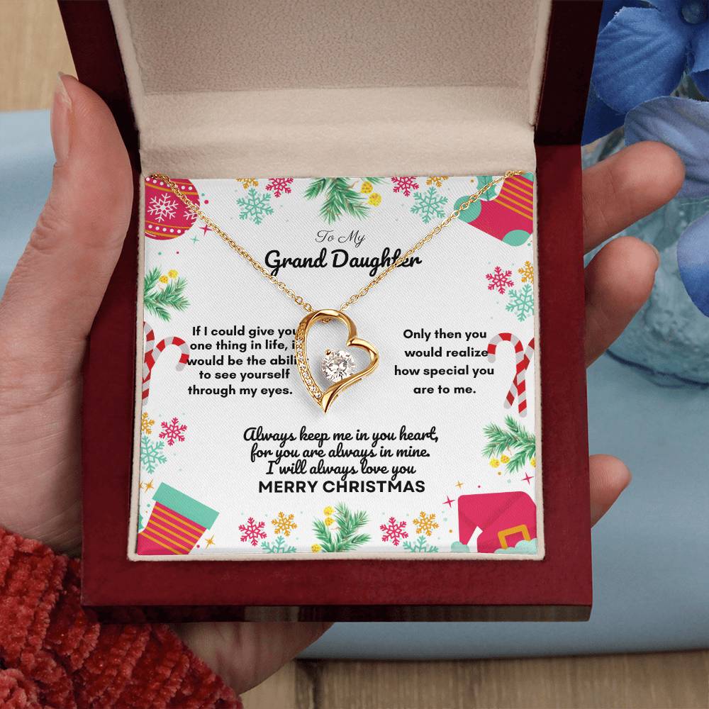 Imagine how proud your grand daughter will be wearing this beautiful necklace. Take your choice of white gold or yellow gold. Upgrade to the luxury box and when open, it illuminates a LED light shing on the necklace making it sparkle.