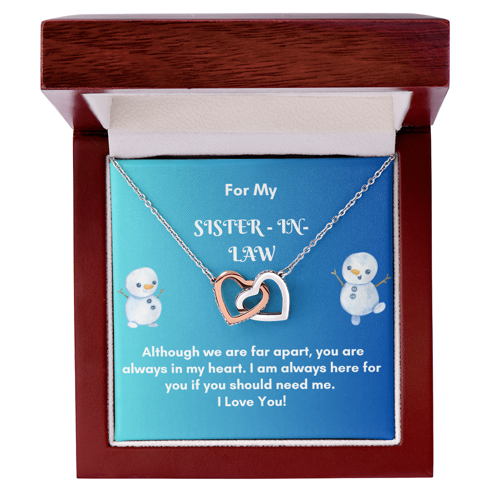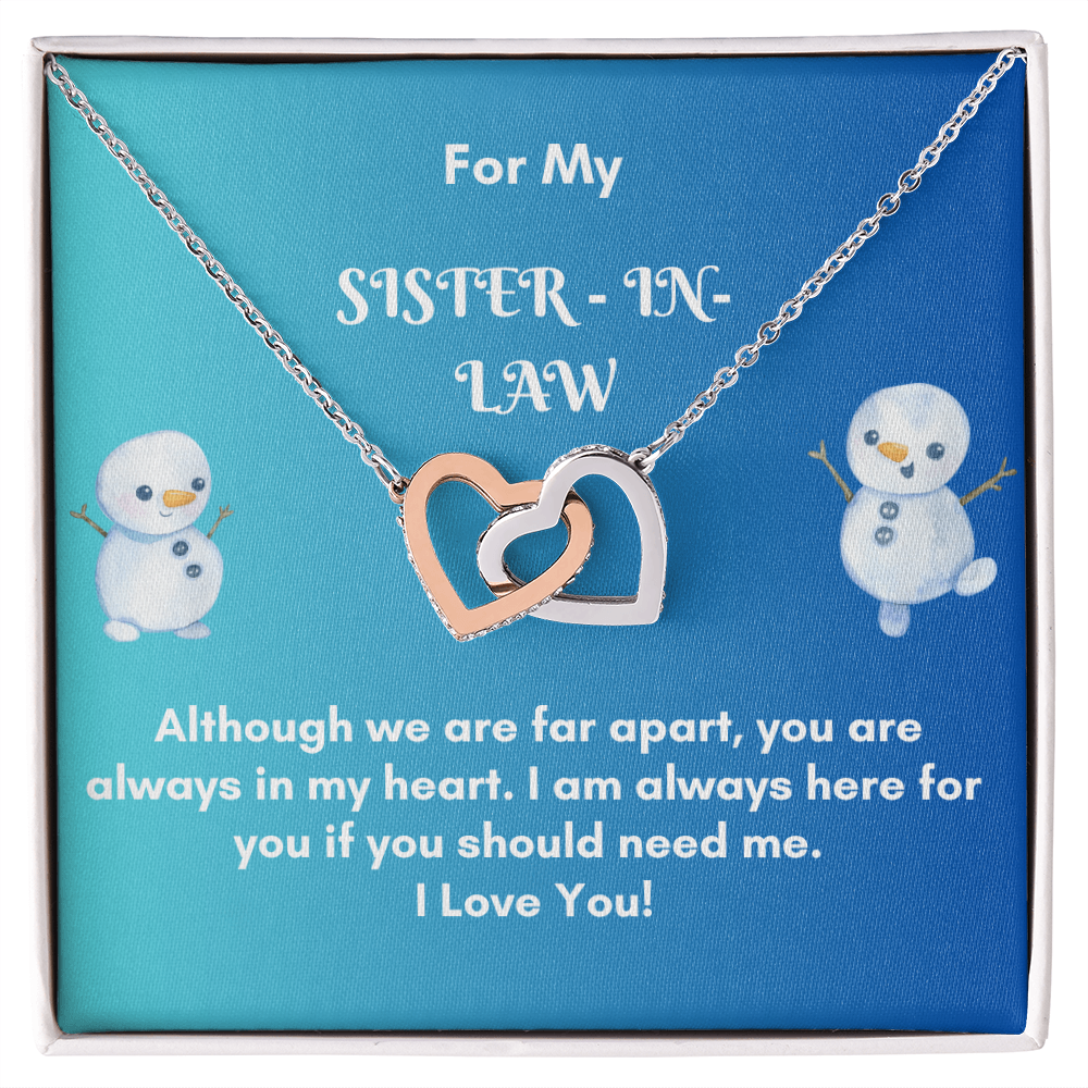 Give your Sister in law this most beautiful adjustable necklace. Two hearts interlocked, one representing you and the other your sister-in-law.