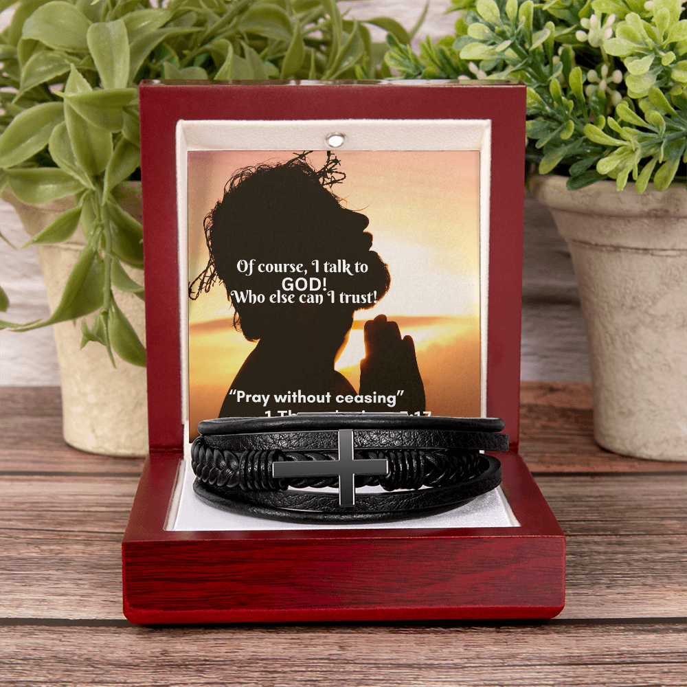 This Men's Cross Leather Bracelet is the perfect keepsake for someone special in your life. Handcrafted with care, this piece features braided vegan leather and a sleek stainless steel cross. This would make an ideal gift for your beloved partner, family members, or dear friends on special occasions like anniversaries, birthdays, or any event where you want to express your love and appreciation unforgettably.