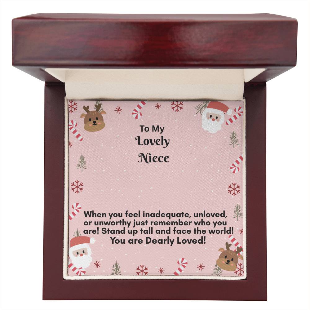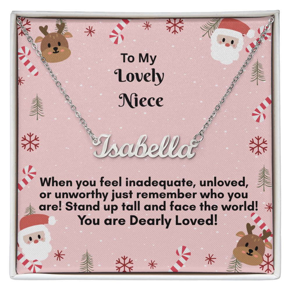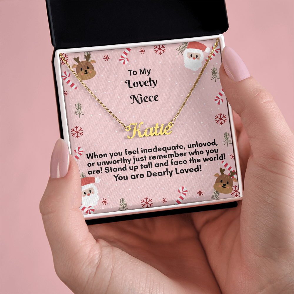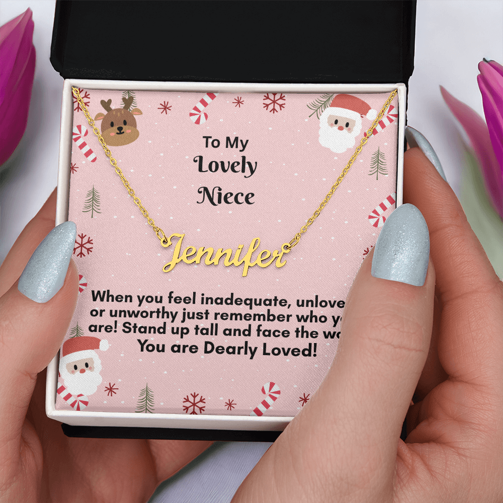 Give your niece this lovely adjustable necklace. It is made especially for her, in either polished Stainless steel or 18K gold finish. You can also upgrade to the luxury box, which has a built-in LED light. When opened, the LED light shines in the necklace, making it sparkle and shine.