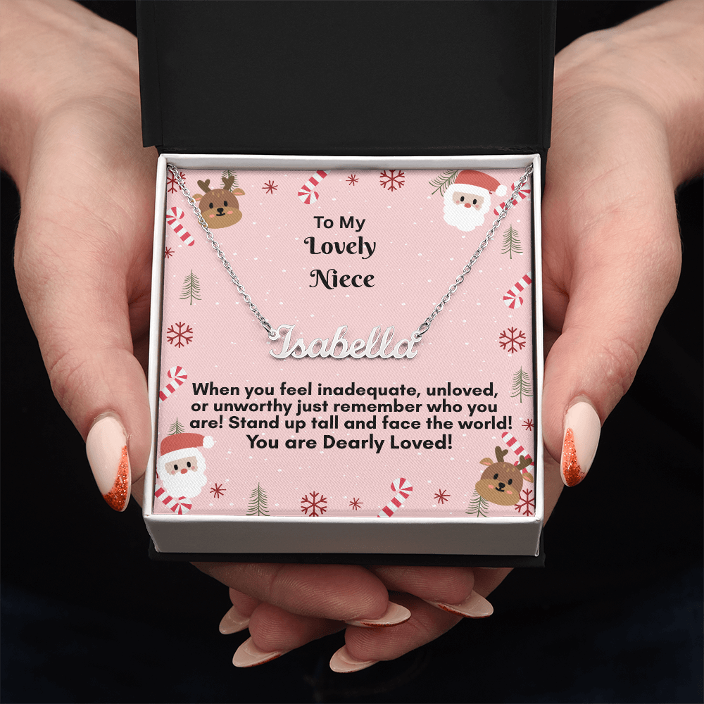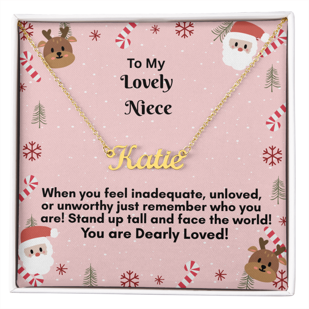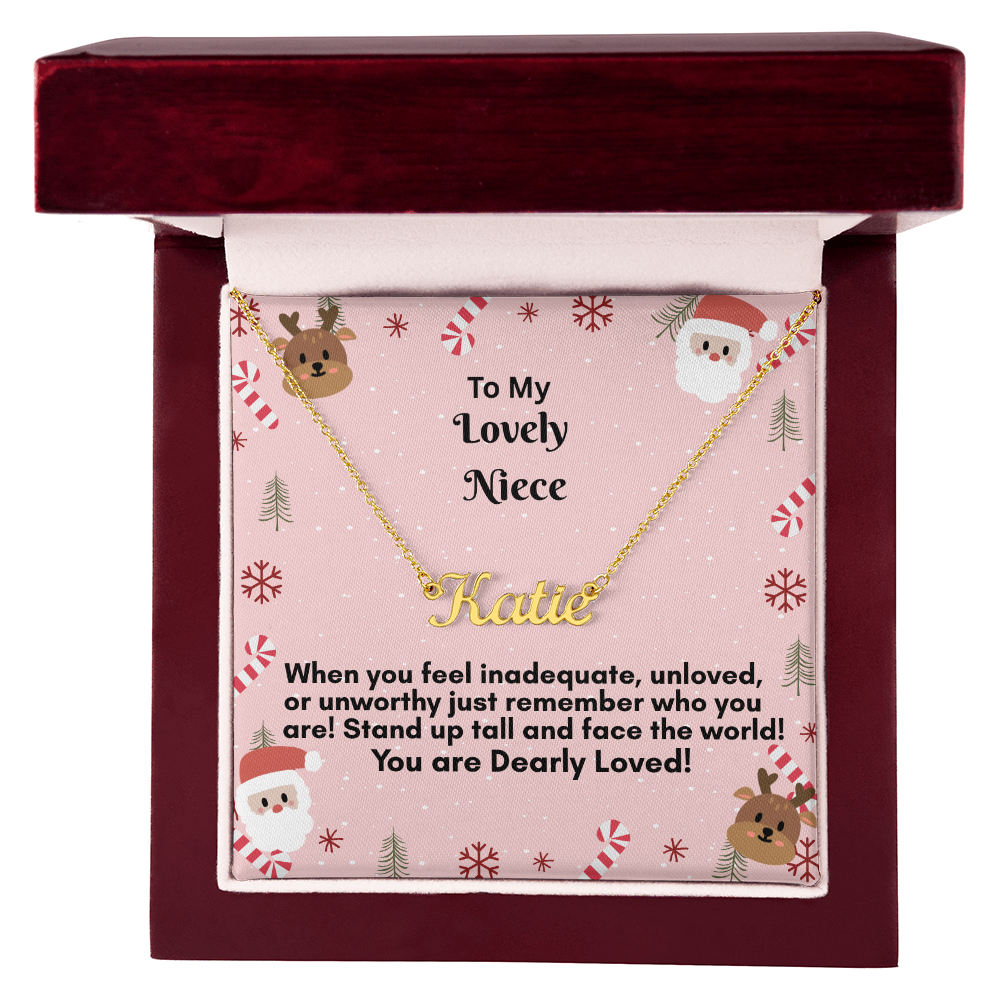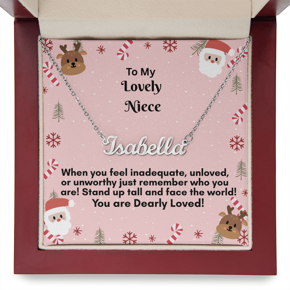 Give your niece this lovely adjustable necklace. It is made especially for her, in either polished Stainless steel or 18K gold finish. You can also upgrade to the luxury box, which has a built-in LED light. When opened, the LED light shines in the necklace, making it sparkle and shine.