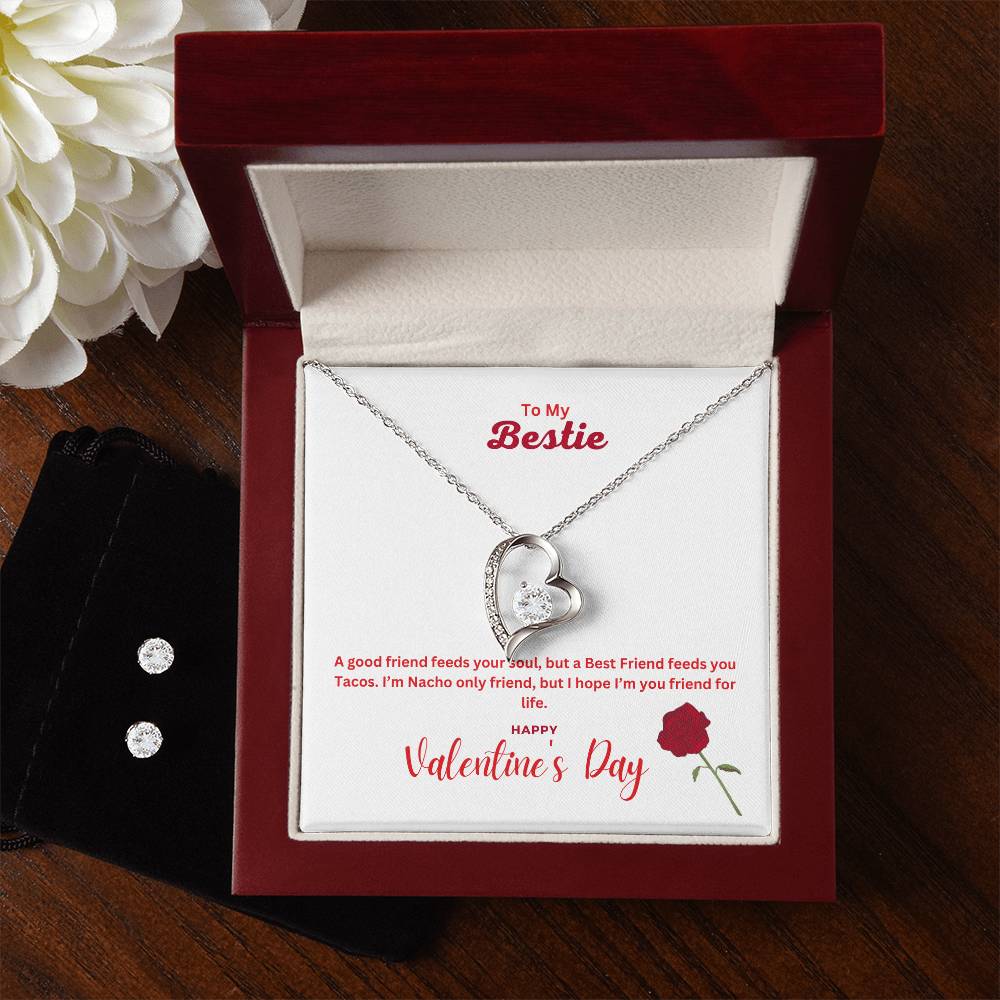Give your loved one a gift that will make their heart swell! The Forever Love Necklace and Cubic Zirconia Earring Set is sure to do the trick. This necklace and earring pairing provides dazzling sparkle when worn together or separately, and is perfect for any occasion! Do not miss out on this special offering!