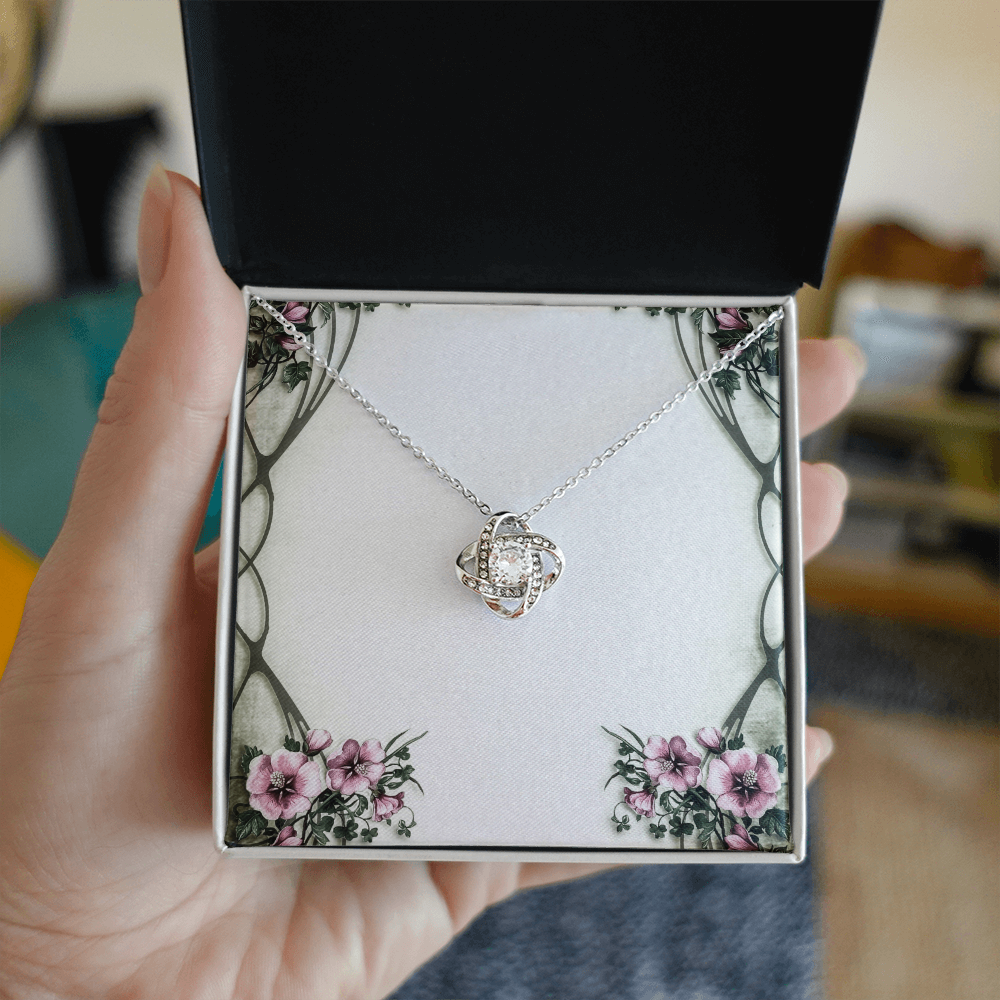 Imagine her reaction receiving this beautiful Love Knot Necklace. Representing an unbreakable bond between two souls, this piece features a beautiful pendant embellished with premium cubic zirconia crystals. Surprise your loved one with this gorgeous gift today!